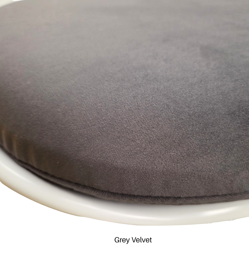 It comes with a zipped velvet or woven cushion (HD foam) available in a choice of  colours, and cushion is secured by four Velcro pads to the seat.